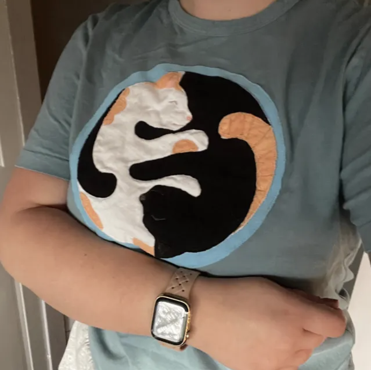 “She made me a piece of art in t-shirt form! I sent some inspo pics of my angel baby kittens and art was born. The t-shirt is high-quality and the design is so perfect. She was quick in communication and in creating the item. Highly recommend!”